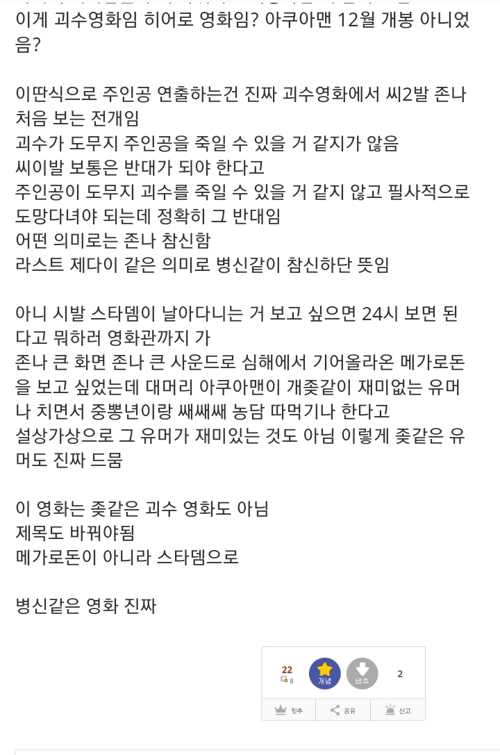 주연이 스타뎀인 시점에서 걸렀어야지 난 스타뎀 주연 영화는 케이블에서 해줄 때나 본다.