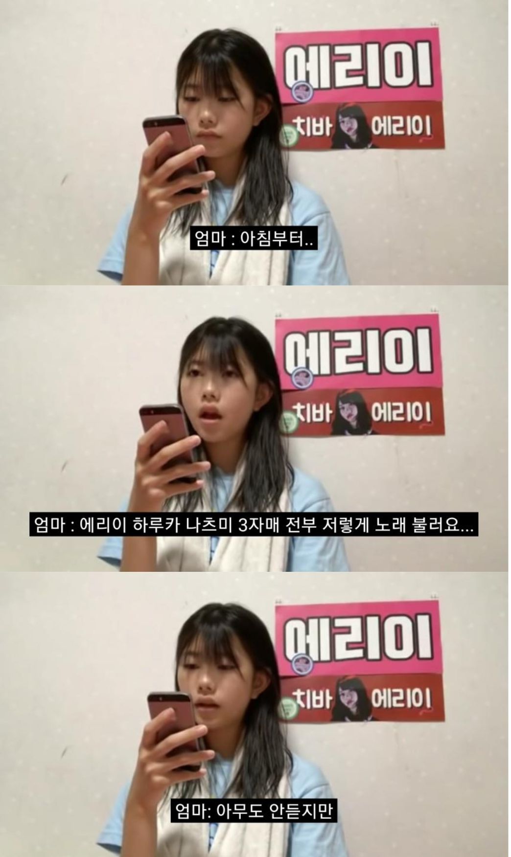 3년전, akb 드래프트 2기로 팀에 합류하는게 결정되었을 당시 어머님과 초6 치바 에리이, 그리고 동생 둘.