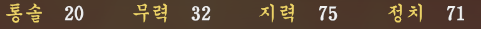 [해당 장수가 모시는 군주 아래의 모든 문관의 충성도를 매월마다 1씩 상승시킨다. 세력내 파벌생성 방지 및 세력내 문관들의 불만도를 매달 10%씩 감소시킨다]