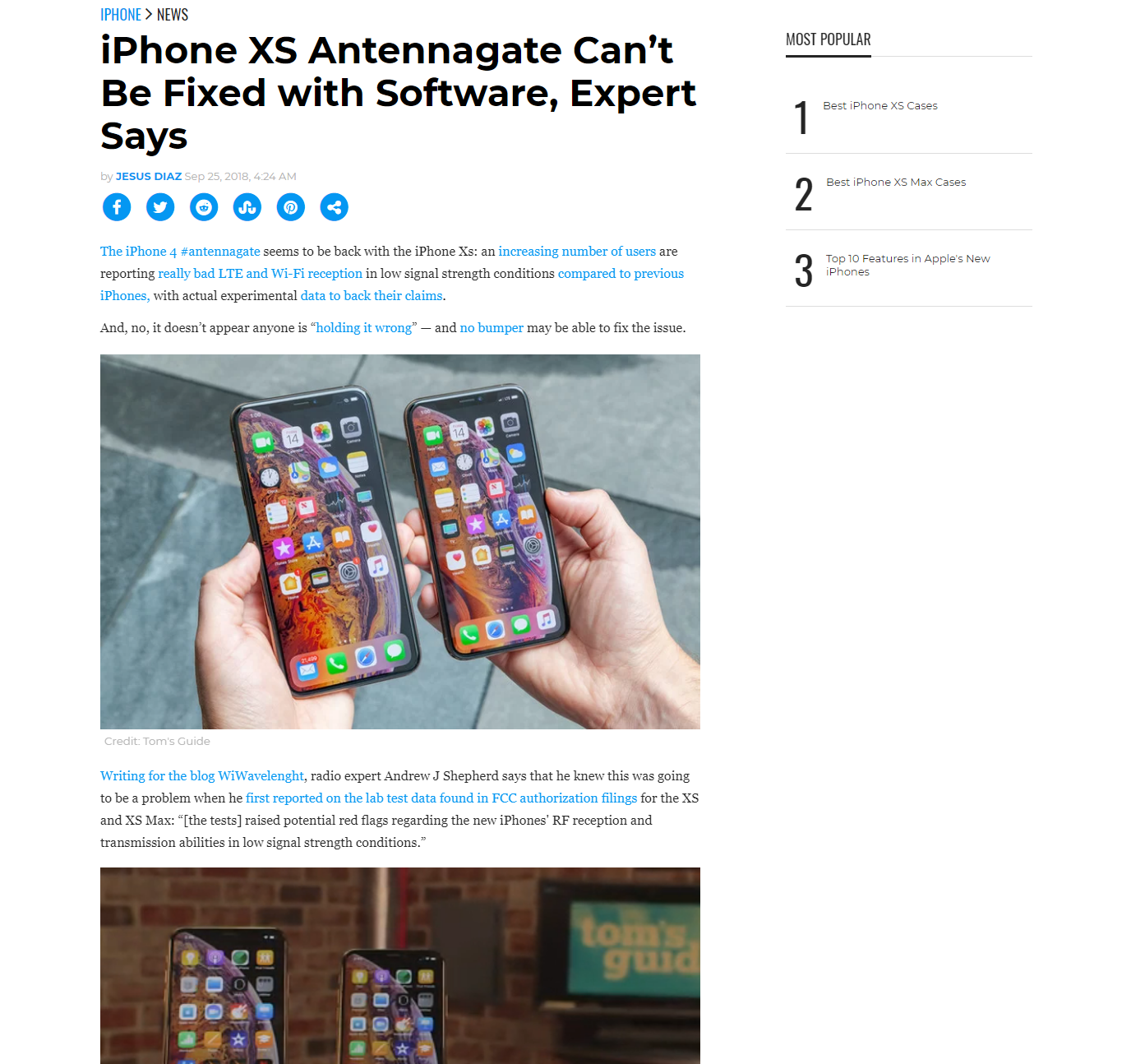 1. 이번 신형 아이폰 XS, XS MAX 테스트에서 낮은 전파 강도에서 수신률/전송률이 엄청나게 떨어짐(LTE, 와이파이 둘다 해당)
