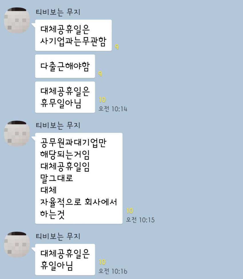 회사에서 법정공휴일은 쉽니다라고 했다면 대체공휴일은 쉬는게 맞음
