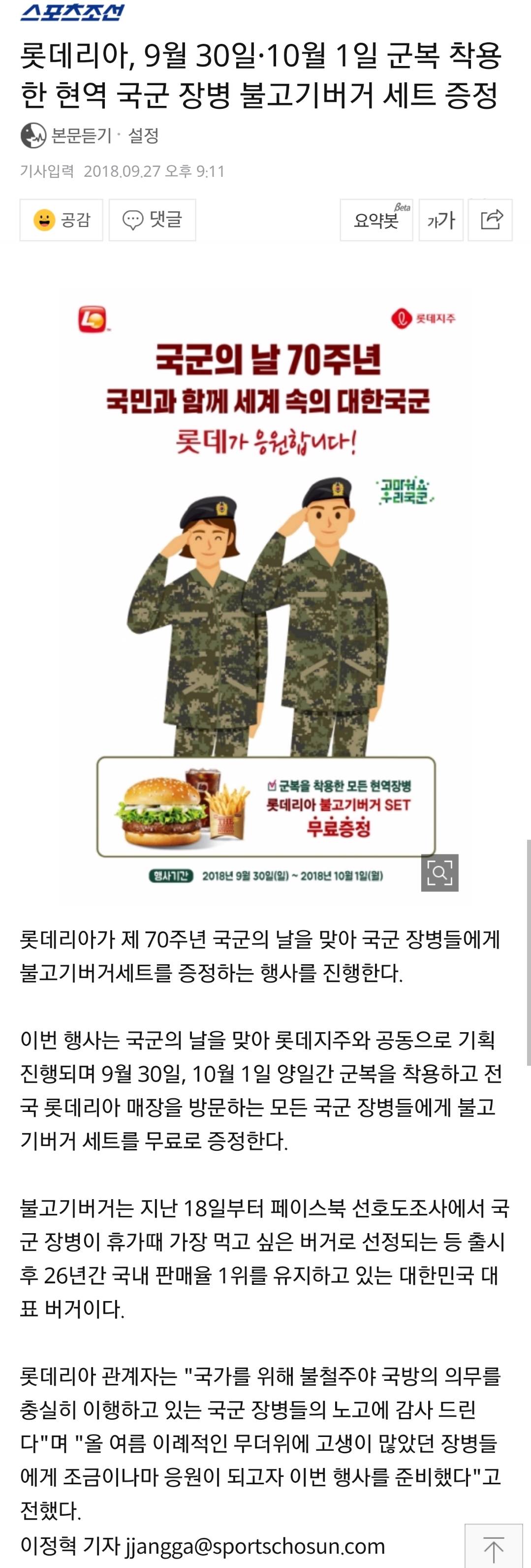 나라지키느라 고생하니 햄버거 꼭 챙겨묵어라