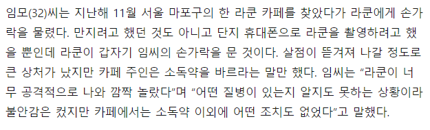 야생아니고 애완용이라 광견병 문제는 없을걸