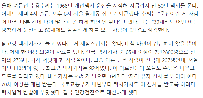 90세 이상 택시기사 만날 확률