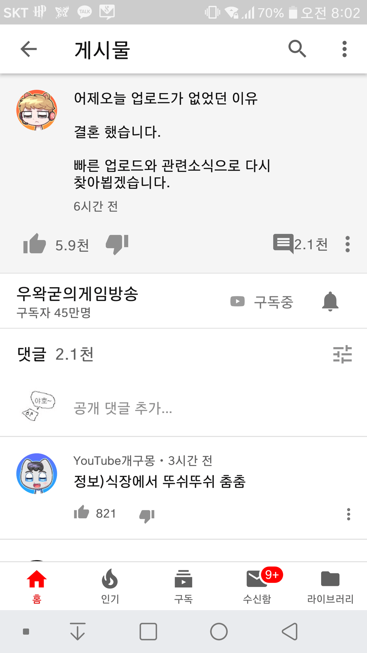 트위치 스트리머 우왁굳과 지난 13일 결혼했다고 함.