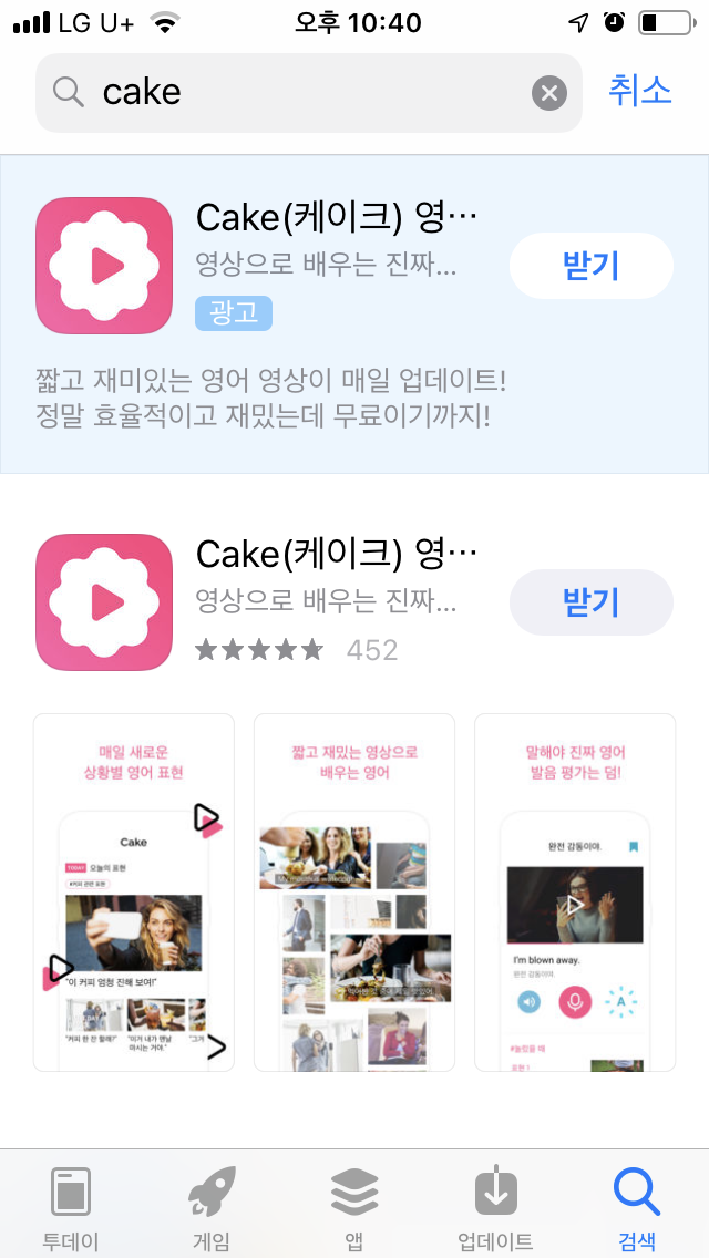 cake라는 앱이 1위인가 하길레 받았는데 좋다