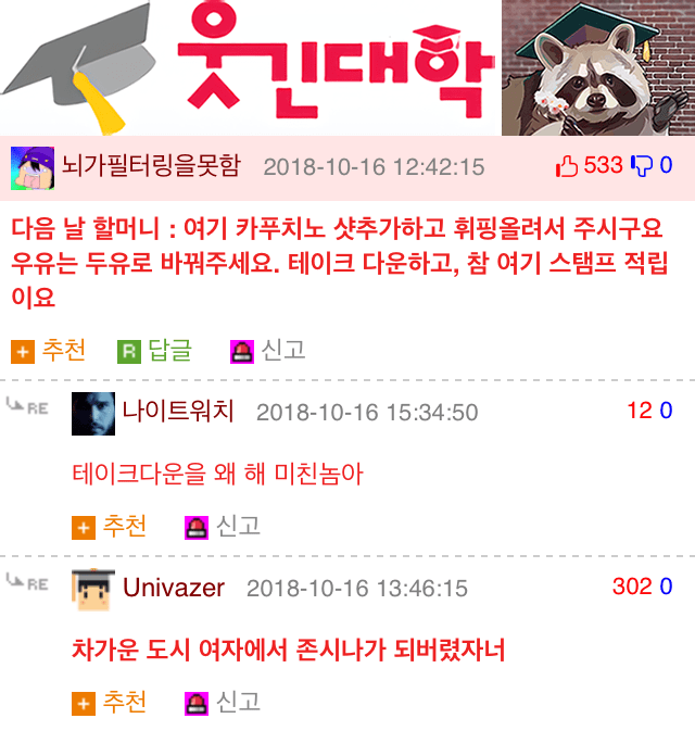 내친구도 테이크아웃생각안나서 어버버 거리다 싸가지고갈게요 이랬는데 ㄹㅇ 아직도 그걸로놀림
