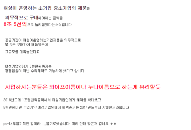 리얼 병신같네. 사장이 여자면 여성기업이냐? ㅋㅋㅋㅋㅋㅋㅋㅋㅋ 근데 이거 작년에도 이미 7조 3천이었네 ㅋㅋ