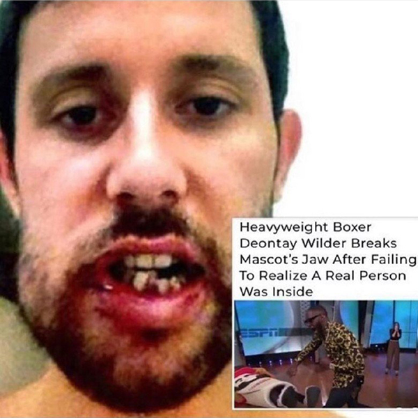 마스코트 쓰고있던 사람 턱뼈 부서짐