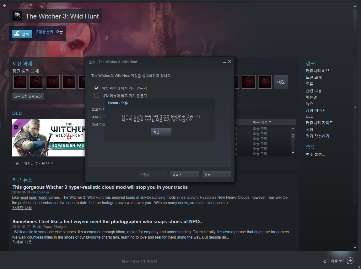 와우 히오스 다 깔았는데 위쳐까지는 받아드릴수없었던거시다 하드사러간다 블프때 세일하냐