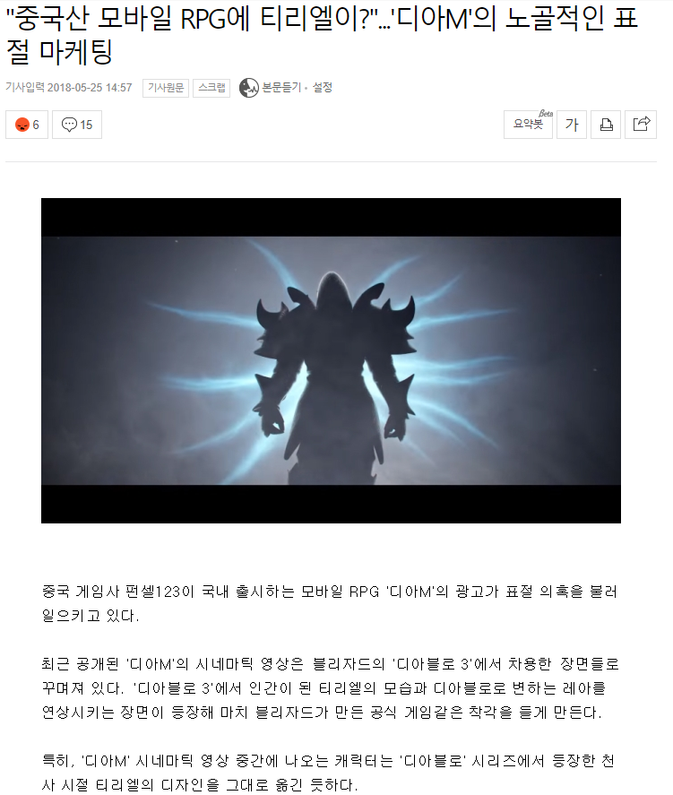 ‘디아M’은 중국 넷이즈가 개발한 모바일 MMORPG으로, 중국 서비스명은 ‘무진신역(无尽神域)’이다. 핵앤슬래시 방식으로 빠른 템포의 사냥을 특징으로 내세운다. 한국 서비스를 맡은 펀셀123(FUNCELL123)은 지난 5월 티저 영상과 광고 이미지 등을 공개하며 사전예약을 시작했다.
