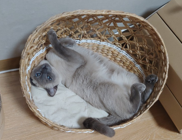 대한민국의 경제에 대해 이여기하고 있는데 바구니에 고양이가 앉았습니다