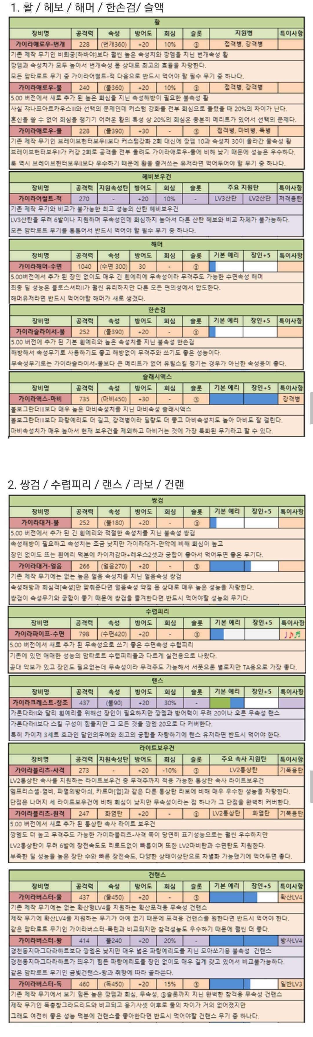 니가 꼭 먹어야 될 무기 리스트다 나머진 다 팔아서 살림에 보태