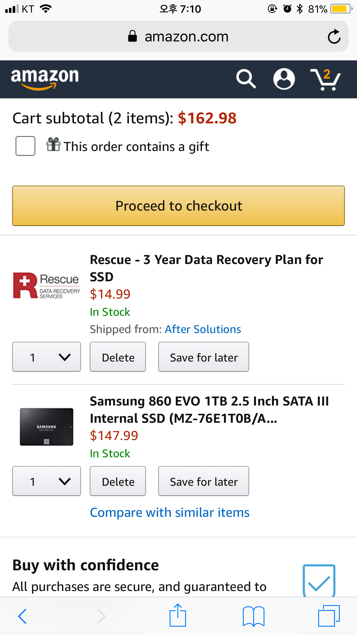 아마존은 직배라 그냥 주소 쓰고 결제하면 끝