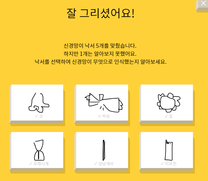 얘 러닝시켜주는거긴 한데 내 그림 어디까지 알아먹나 궁금하기도 해서 그려봤는데 슬슬 못알아먹네