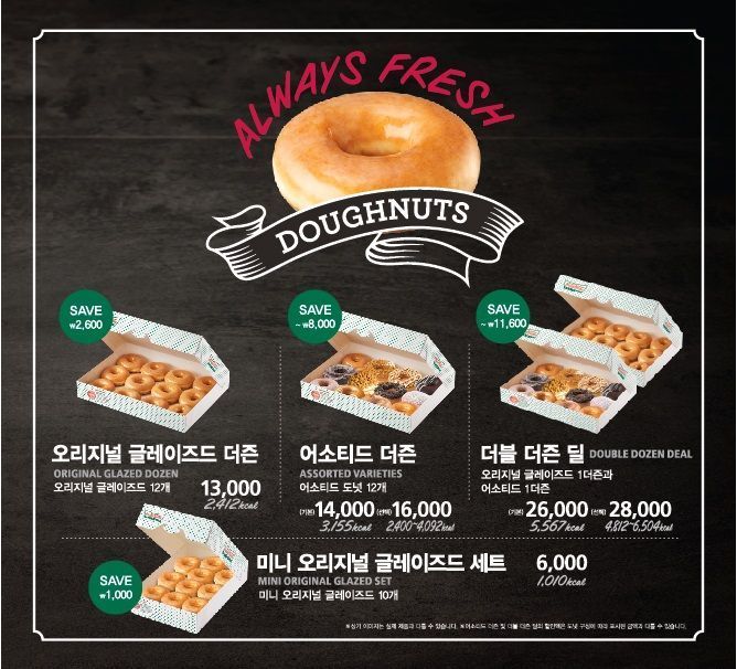 오리지널 글레이즈드 더즌(오리지널 글레이즈드 12개) 가격은 1만2000원에서 1만3000원으로 8.3% 올랐다. 더블 더즌 딜(오리지널 글레이즈드 1더즌과 어소티드 1더즌) 기본 가격은 2만6000원에서 2만7000원으로 4%, 선택 가격은 2만7000원에서 2만8000원으로 3.7% 인상됐다. 어소티드 더즌(어소티드 도넛 12개)과 미니 오리지널 글레이즈드 세트(미니 오리지널 글레이즈드 10개) 가격은 변동이 없다.