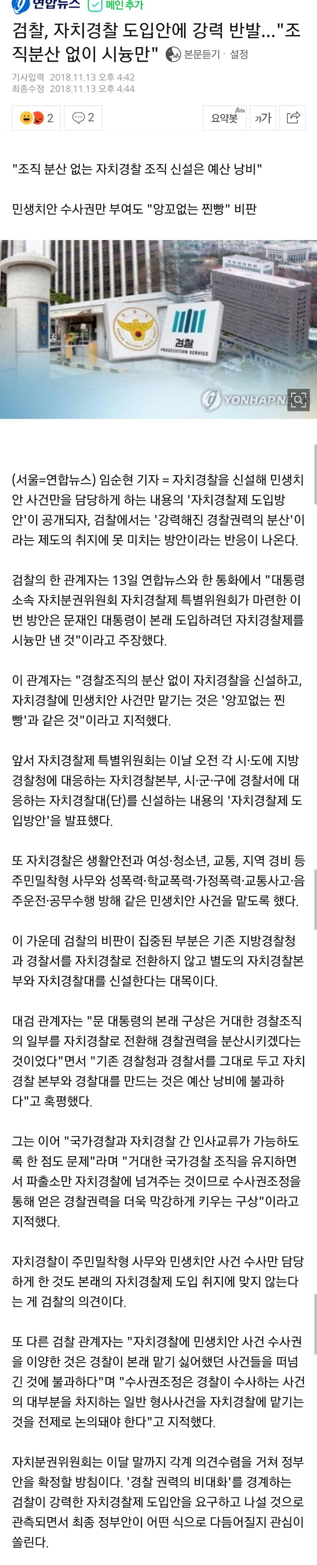 검찰 자신들도 경찰 수사의 타겟이 되거든. 그래서, 경찰의 권력도 분산되어야 한다고 주장하는거고.