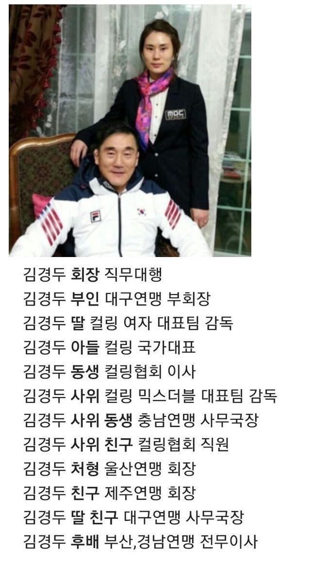 물론 의외로 컬링이 그동안 돈이 됐고, 그걸 김경두 family가 혈연으로 다 해먹었을수도 있긴 하지만, 평소에 관심도 없다가 섣불리 깔건 아닌듯