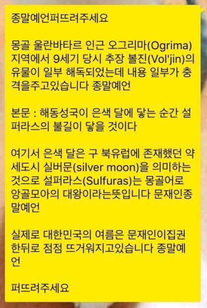 wildgrass// ㅋㅋ 자기들의 신념을 뒷받침해줄 근거가 되는건가. 출처도 불분명한 글 보고 국가전복도 시킬분들이시네..