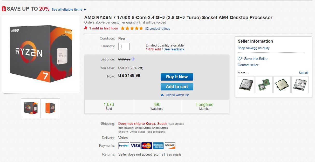 https://www.ebay.com/itm/AMD-RYZEN-7-1700X-8-Core-3-4-GHz-3-8-GHz-Turbo-Socket-AM4-95W-YD170XBCAEWOF-/302242007237