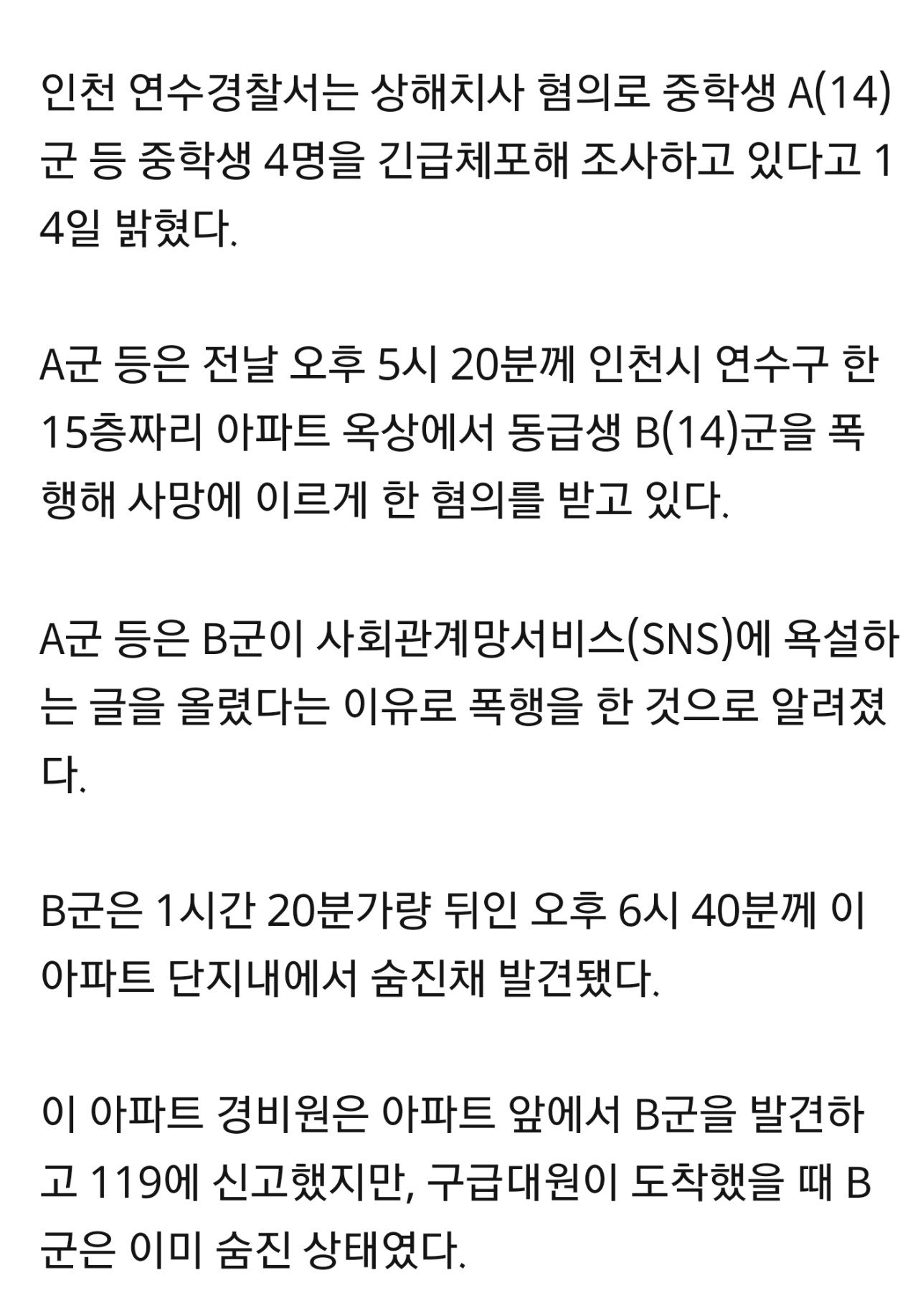 야 시발 사람죽여도 사형집행 안하는 나라인데 청소년이라 또 촉법소년이라고 어물쩡 넘어가겠지 개 씨발같은 경우야 아주 ㅋㅋ