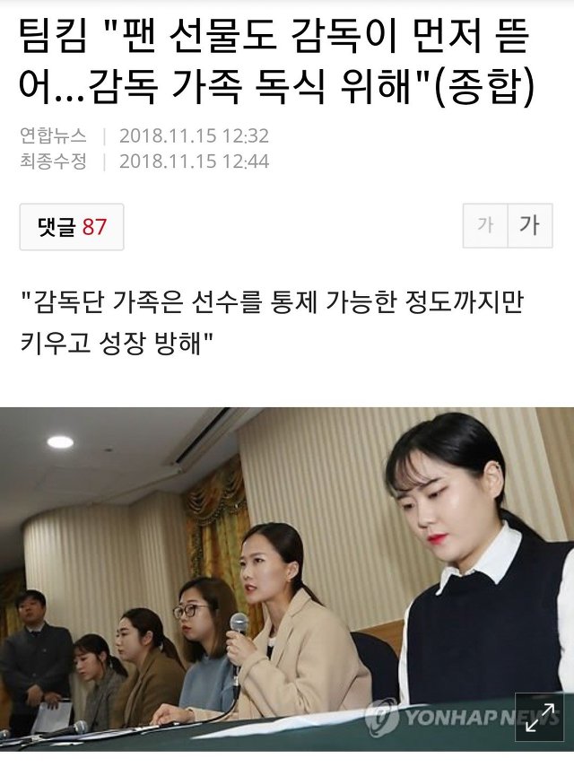 같이훈련한 해외코치도 훈련할때 감독이 없으면 다행이라 생각했다고 입장표명..