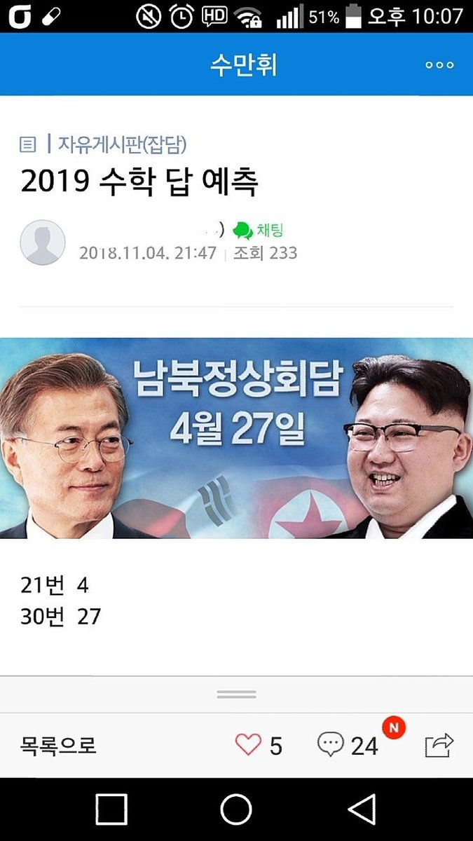 정상회담을겨냥해 빨리 밀실을 탈출하고픈 출제자니뮤ㅠ