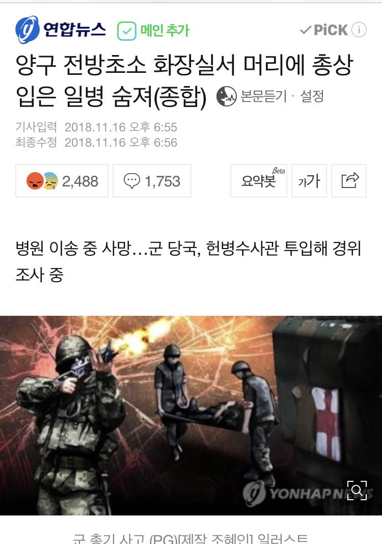 젊은 청춘이 나라지키러 갔다가 허무하게... 부를땐 나라의 아들 상해입으면 느그아들인데 어떻게 대처하나 봐야겠네 부모님 억장 무너지겠다 ㅠㅠ