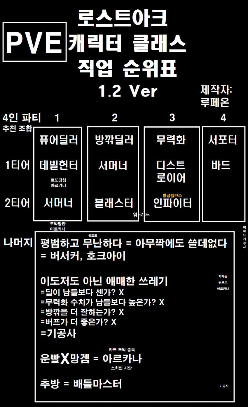 근데 아직 뭐 직업별 제대로 분석한 것도 없는데 벌써 계급표는 왜 만드는지 이해가 안가네 설마 벌써 12캐릭 전부 만렙 키우고 템렙 빠방에 스포 285? 빠방한것도 아닐텐데 ㅋㅋ