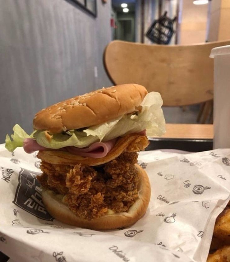 치킨을 빼서 치킨한입 버거 한입 캬 천재