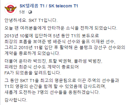 페이커빼고 다 교체네.. 뱅울프는 걍 북미가서 돈많이 받고 행복롤했으면 좋겠다
