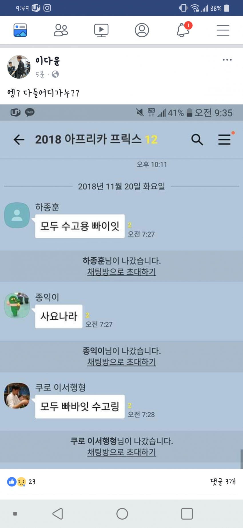 ㅋㅋㅋㅋㅋㅋㅋㅋㅋㅋ 채팅이 나갈때 하는 인사밖에 없엌ㅋㅋㄲ