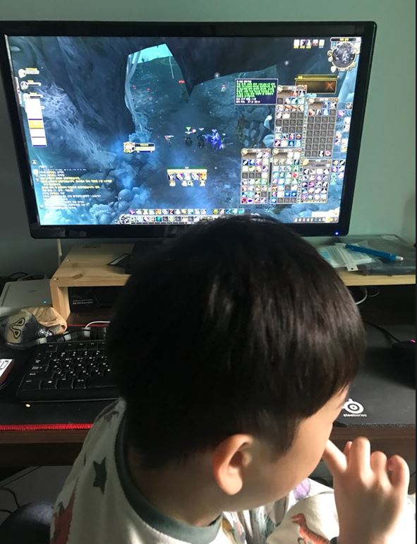 게임 한시간 후 아이가 아빠 주방놀이 또는 괴물놀이 하자고 옆에서 낑낑거림.