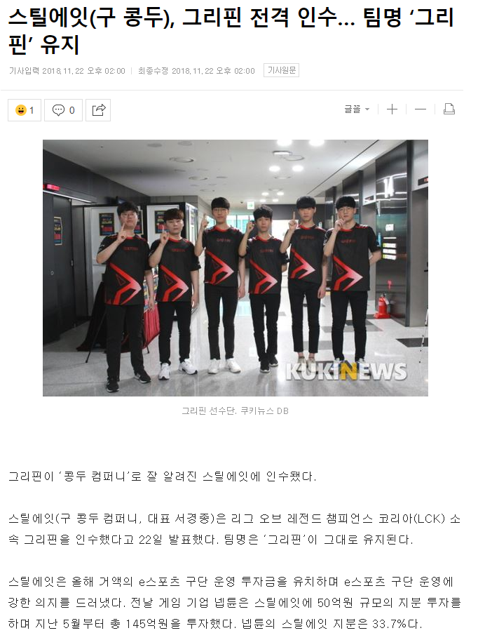 롤팀 2부 강등돼서 해체하고 그리핀 인수하는거
