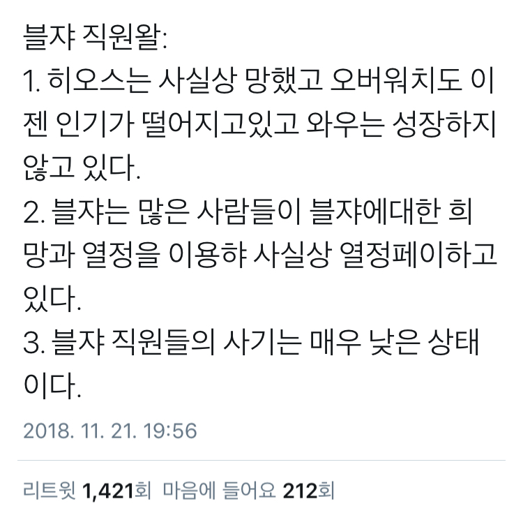 믿고 안믿고는 자유지만 요새 블리자드 하는 개짓꺼리 보면 충분히 그럴만하다 라고 생각되는 부분
