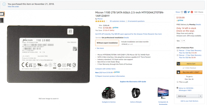 마이크론 2테라는 240달러가 최저니 블프 가능성 있지