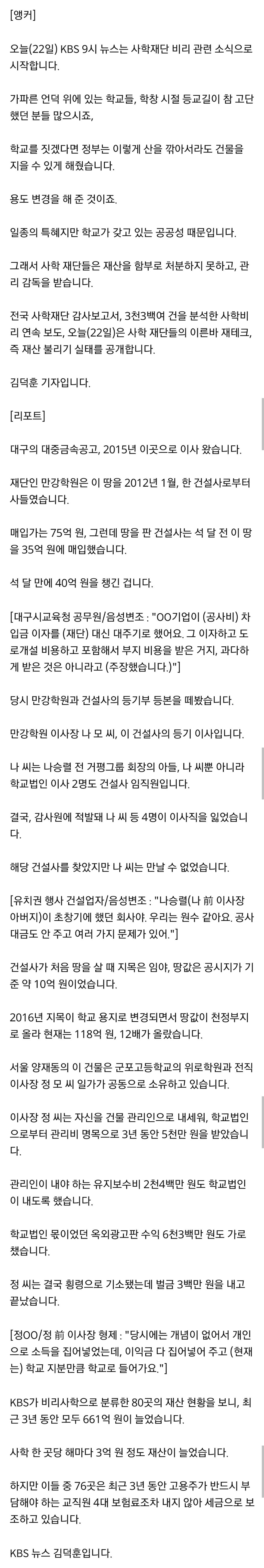 슬슬 유치원에서 중고등학교로 비리가 올라가네 잘됐다 전부 모가지 치고, 공교사 더 뽑자