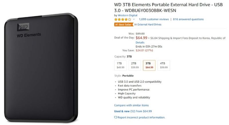 웬디 외장 3테라 65달러 + 직배6달러 해서 총 71달러 정도