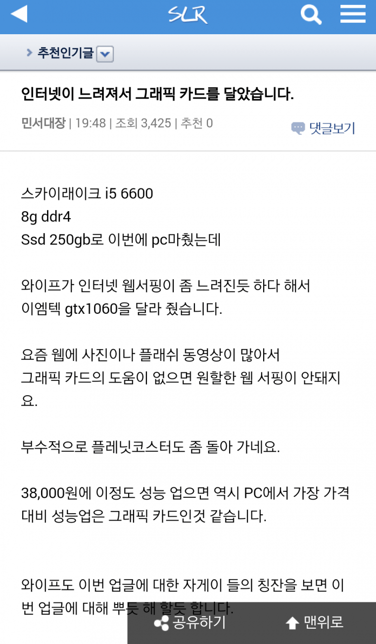 인터넷은 3년 약정이라 함부로 바꾸기 힘들지 그래픽카드 교체하거나 모니터를 마른천으로 잘 닦아줘도 인터넷 속도는 빨라진다