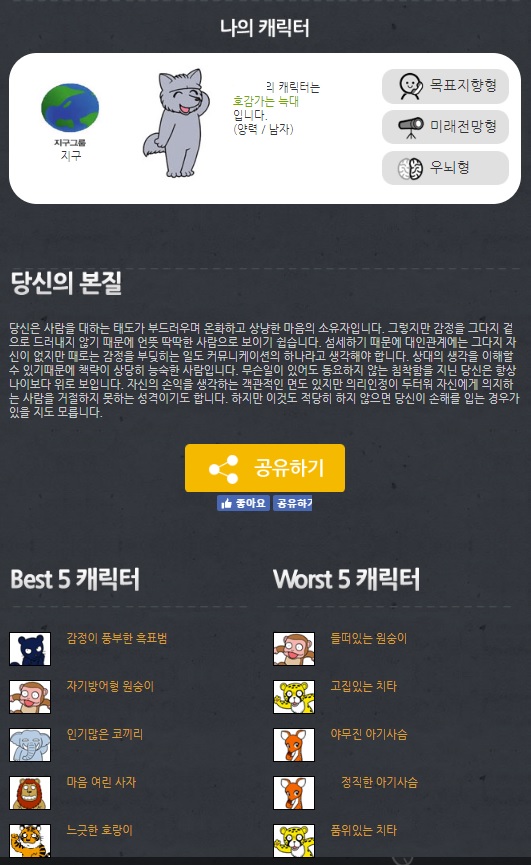자기 방어형 원숭이 캐릭 설명이 나랑 잘 안맞는구만