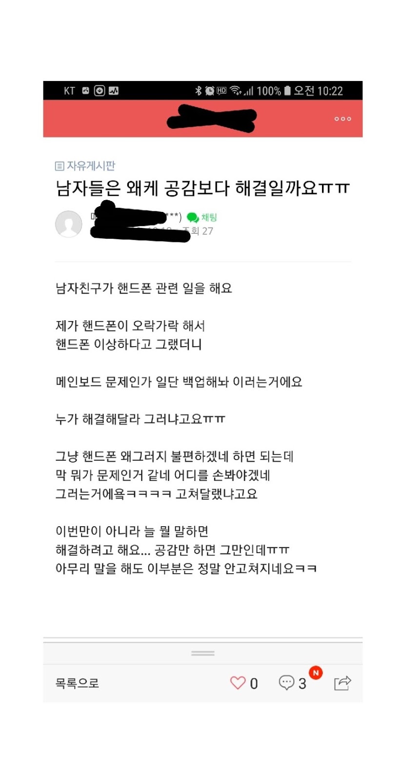 여자 : 핸드폰이 이상해 남자 : 응 좀 이상하네 여자 : .......