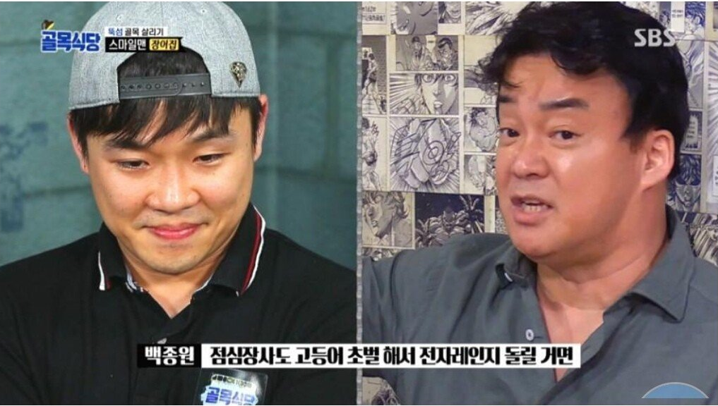 만화거리 빌런들: 오히려 이 인물들은 경양식-장어집-막걸리로 이어지는 역대급 빌런들이 줄줄이 튀어나온덕에 묻혔다. 진짜 말그대로 순수하게 아무대책없이 장사를 시작한사람들. 백종원 솔류션 안받았으면 그냥 장사접는 마당이엇는데 운좋게 기사회생함. 더불어 역대급 미친놈들에게 줄줄이 시달렸던 백종원 역시 사람자체가 악의가 없는 이 두 사람은 구제해주려는 모습을 더욱 적극적으로 보여줌. 특히 분식집 아줌마.