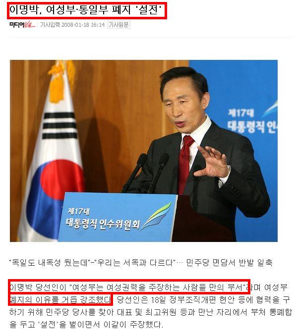 이명박때 여성가족부로 더 강화가 됐는데 뭐. 표로 두들겨 맞는데는 장사없겠지