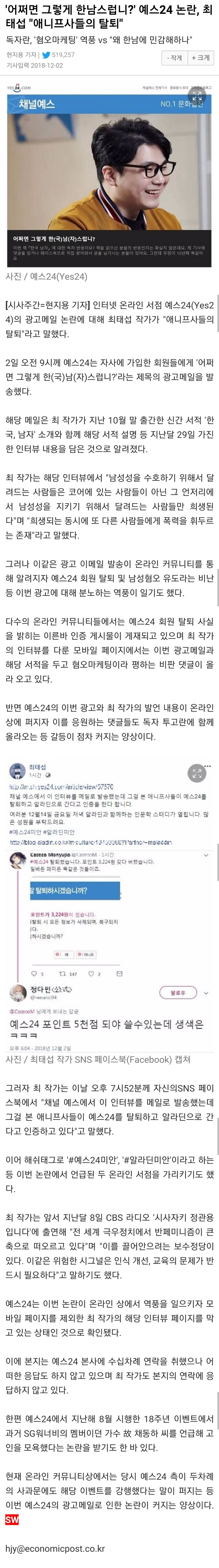 아니 저거 작가가 남자새끼였어? ㅋㅋㅋ 그나저나 나도 쨈저랑 같다. 메일까진 뭐 다른 서점들도 페미코인 줍줍 하니까 라고 생각하고 있었는데 이 기사보니까 교보나 알라딘으로 갈아타야겠다.
