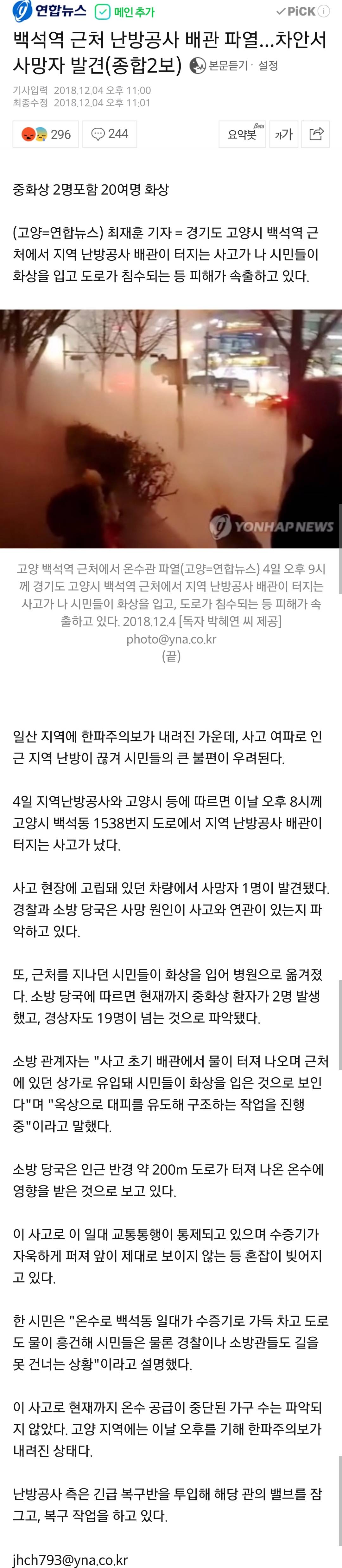 지역난방에 쓰이는 온수관 파열로 온수가 유출됐는데
