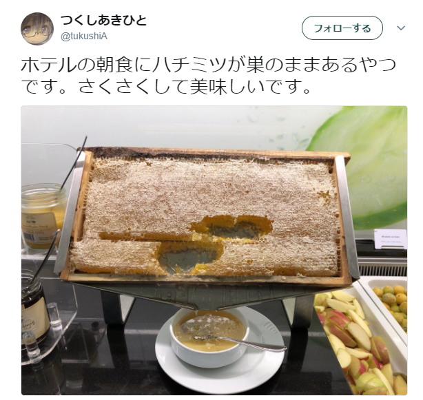 "호텔의 아침 식사에 꿀이 둥지에 남아있는 녀석입니다. 바삭 바삭하고 맛있습니다." 인텔이 퍼올 때 제목을 왜 이렇게 했는지는 모르겠고