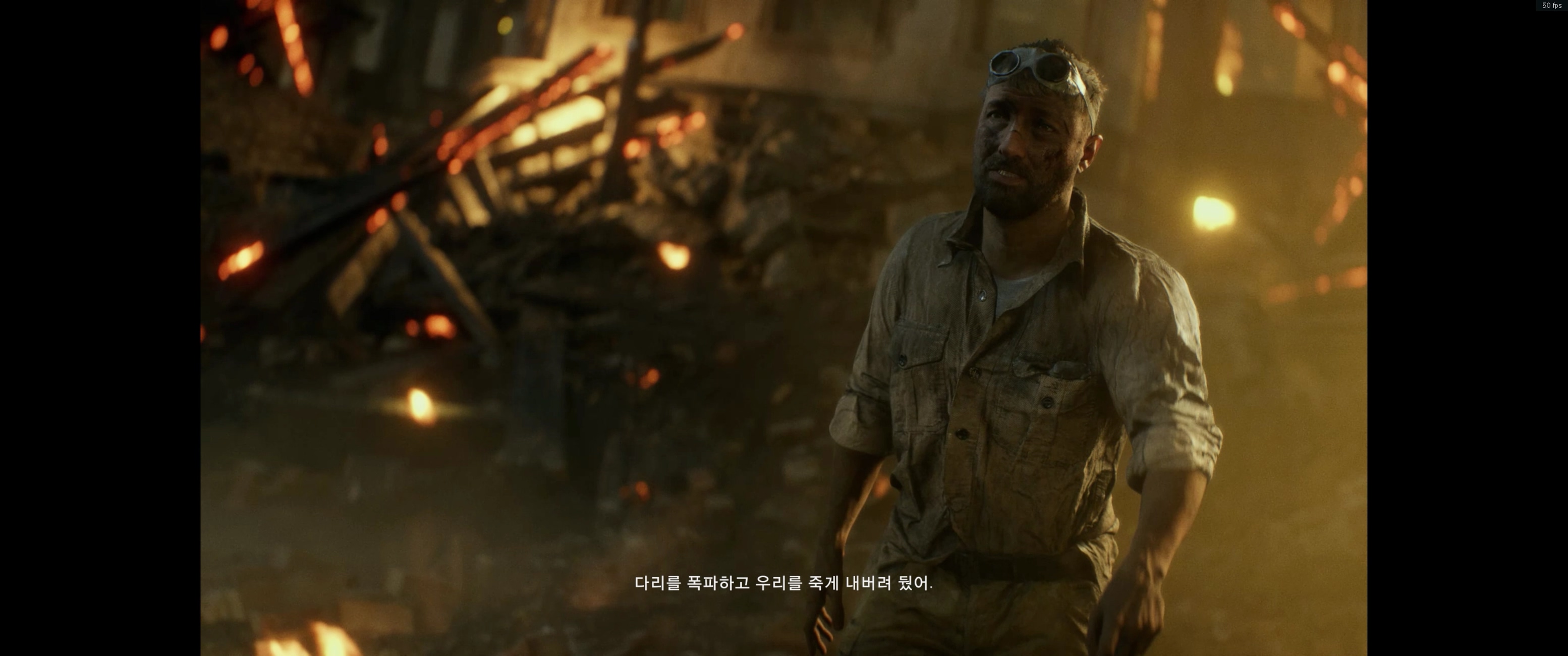 간신히 공중폭격을 피해 건물 밑으로 피신해서 잘 숨음