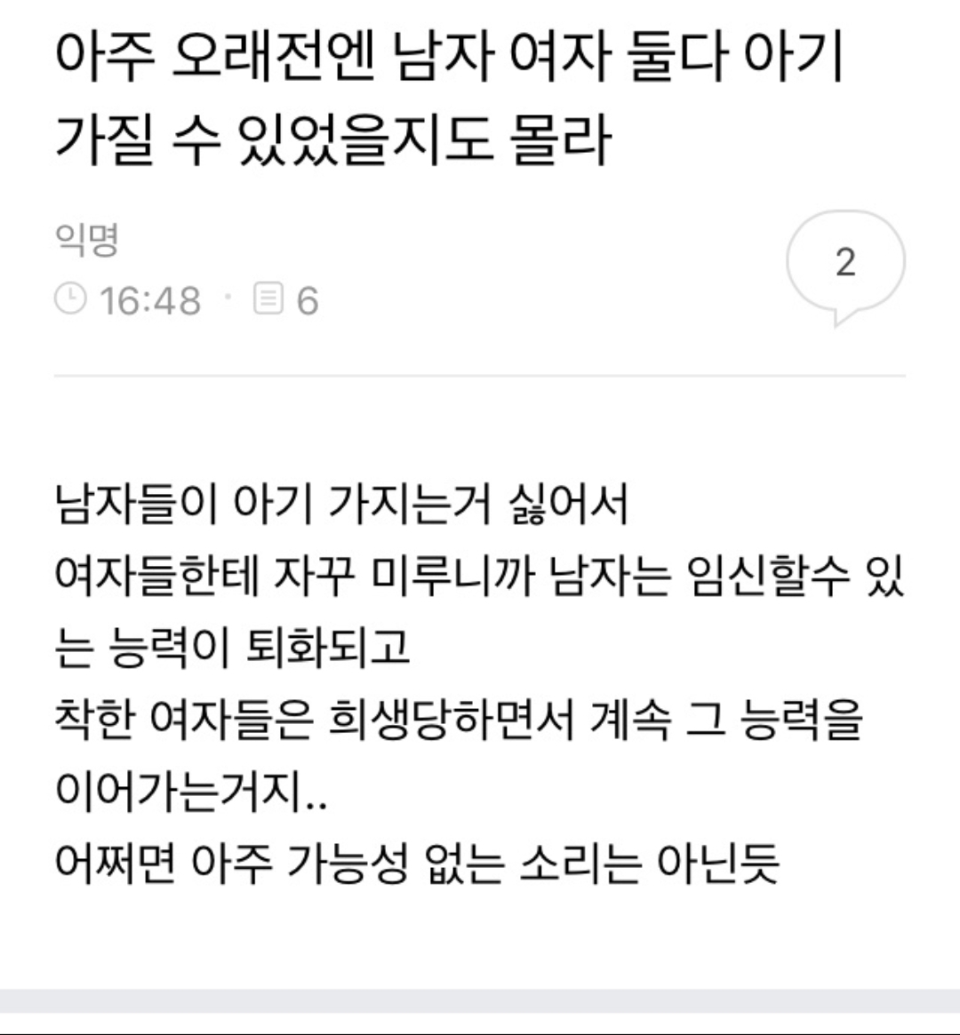 이런걸 보면, 페미는 종교의 영역으로 들어선듯. 이거 완죤 창조론 수준 아니냐