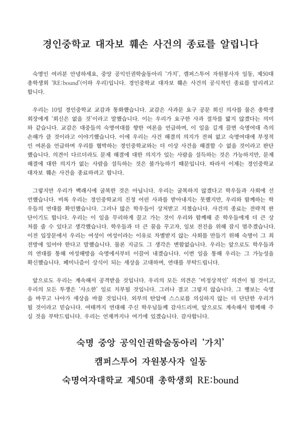 굴복했지만 굴복하지않겠다고 학우들과 사화에 선언했기에 굴복하지않았다!