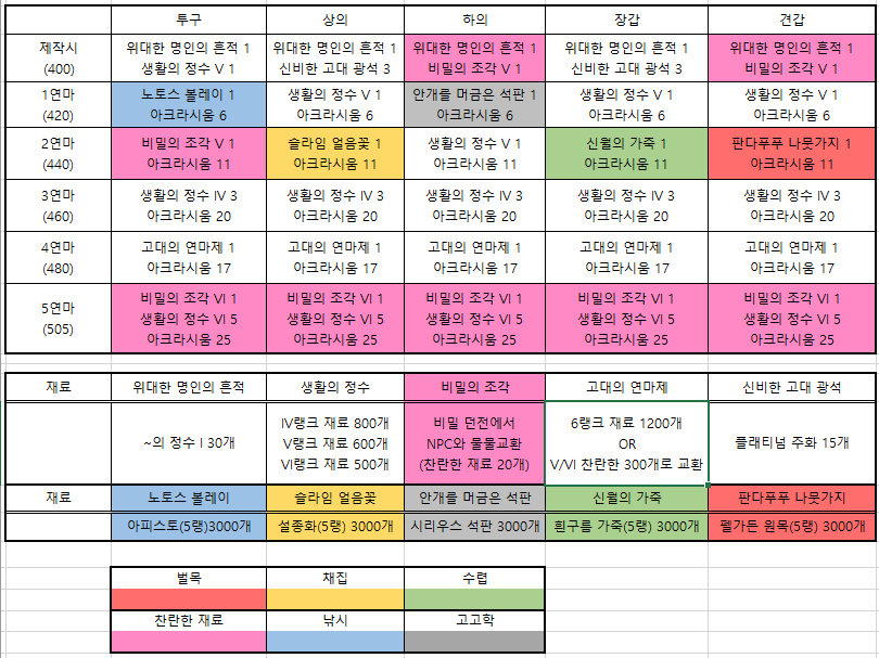 난 385찍을때 생활5연마 1개 레이드 5연마 3개 입고 385찍고 바로 생활400렙제 풀셋갔음.